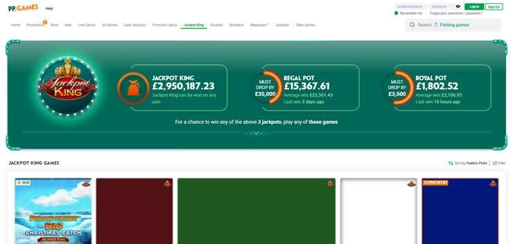 Paddy Power is a UK Gambling Commission licensed casino with a strong focus on jackpot play. The platform features 50+ daily jackpot games, including its well-known Jackpot King network. The Jackpot King page displays multiple live prize pools that can be triggered on any spin, alongside Regal Pot and Royal Pot tiers. Paddy Power states that its daily jackpot games deliver average payouts of around £/€20,000, with prize pools able to grow throughout the day. Past jackpots have exceeded the £/€80,000 mark, setting these games apart from standard slot offerings.